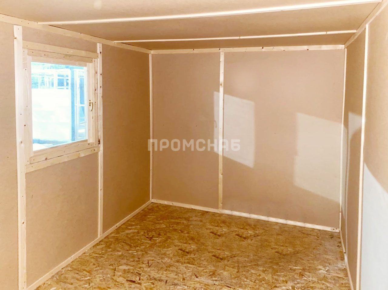 Габаритные размеры 4х2,4 метра Внешняя отделка Металл оцинкованный Внутренняя отделка Оргалит (ДВП) Утепление 50 мм. – URSA Пол ОСБ Окно 1 шт. Дверь 1 шт. Крыша Металл