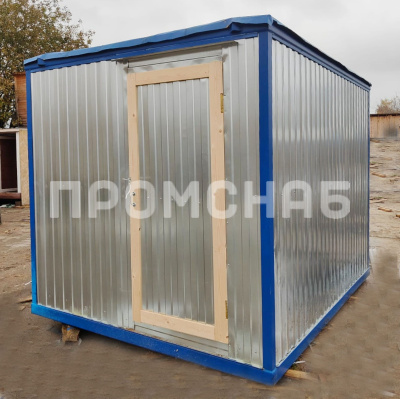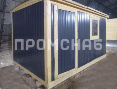 Габаритные размеры 3х2,3 метра Внешняя отделка Металл Внутренняя отделка ДВП Утепление 50 мм. – URSA Пол OSB Деревянные окна двойного остекления 1 шт. Дверь 1 шт. Крыша Оцинкованный металл
