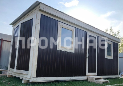 Габаритные размеры 6х2,3 метра Внешняя отделка Металл окрашенный Внутренняя отделка ДВП Утепление 50 мм - URSA Пол ОСБ Окно 1 шт. деревянное распашное Дверь 1 шт. Крыша Оцинкованный металл