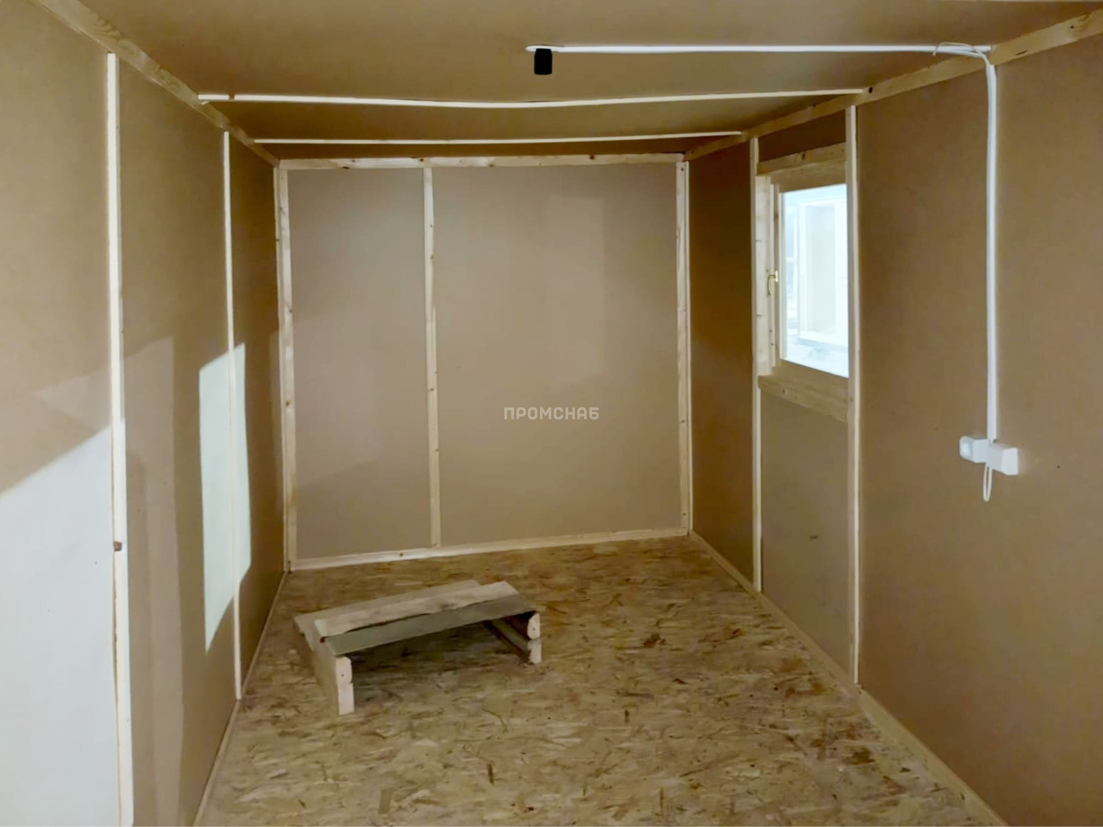 Габаритные размеры 5х2,3 метра Внешняя отделка Вагонка Внутренняя отделка ДВП Утепление 50 мм - URSA Пол ОСБ Окно 1 шт. Дверь 1 шт. Крыша Оцинкованный металл