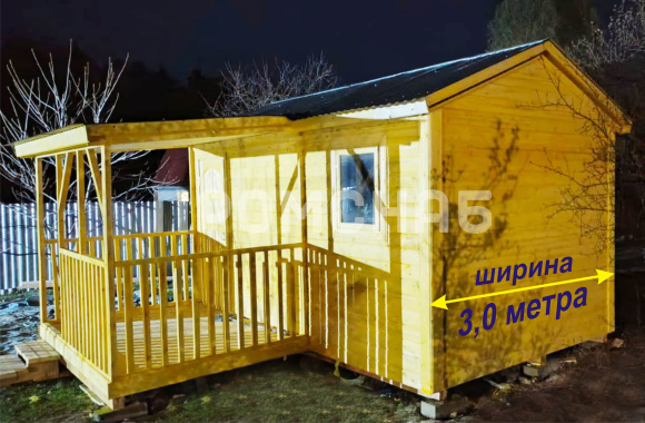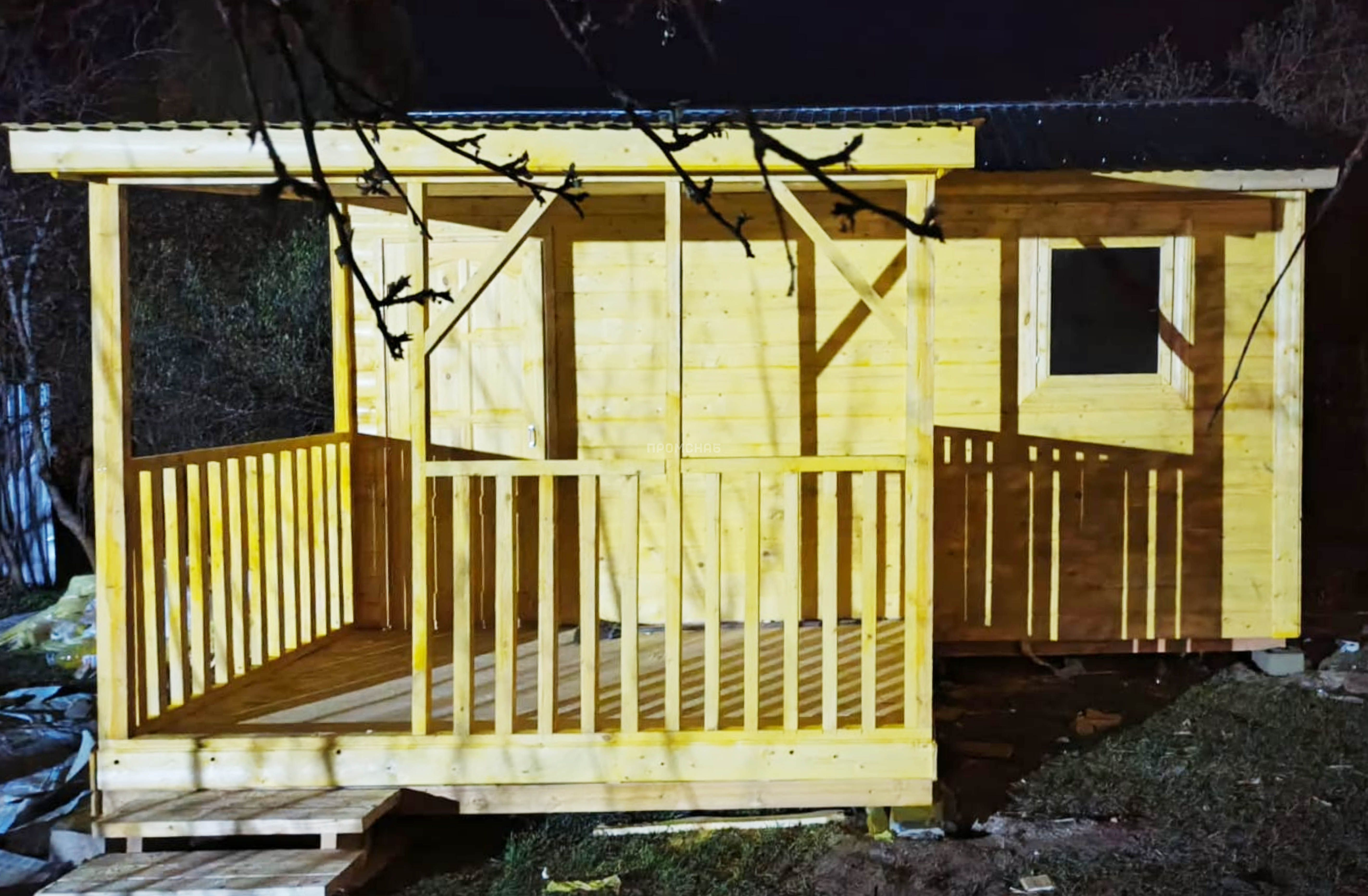 Садовый домик из бытовки с верандой 3 м