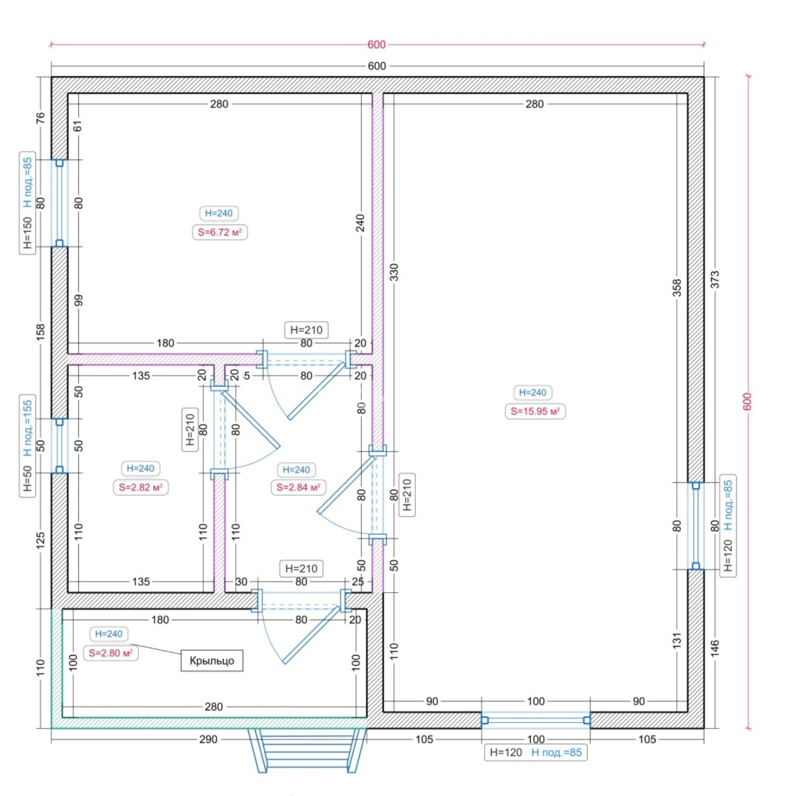 | Дверь входная | Филенчатая 800*2000 мм |