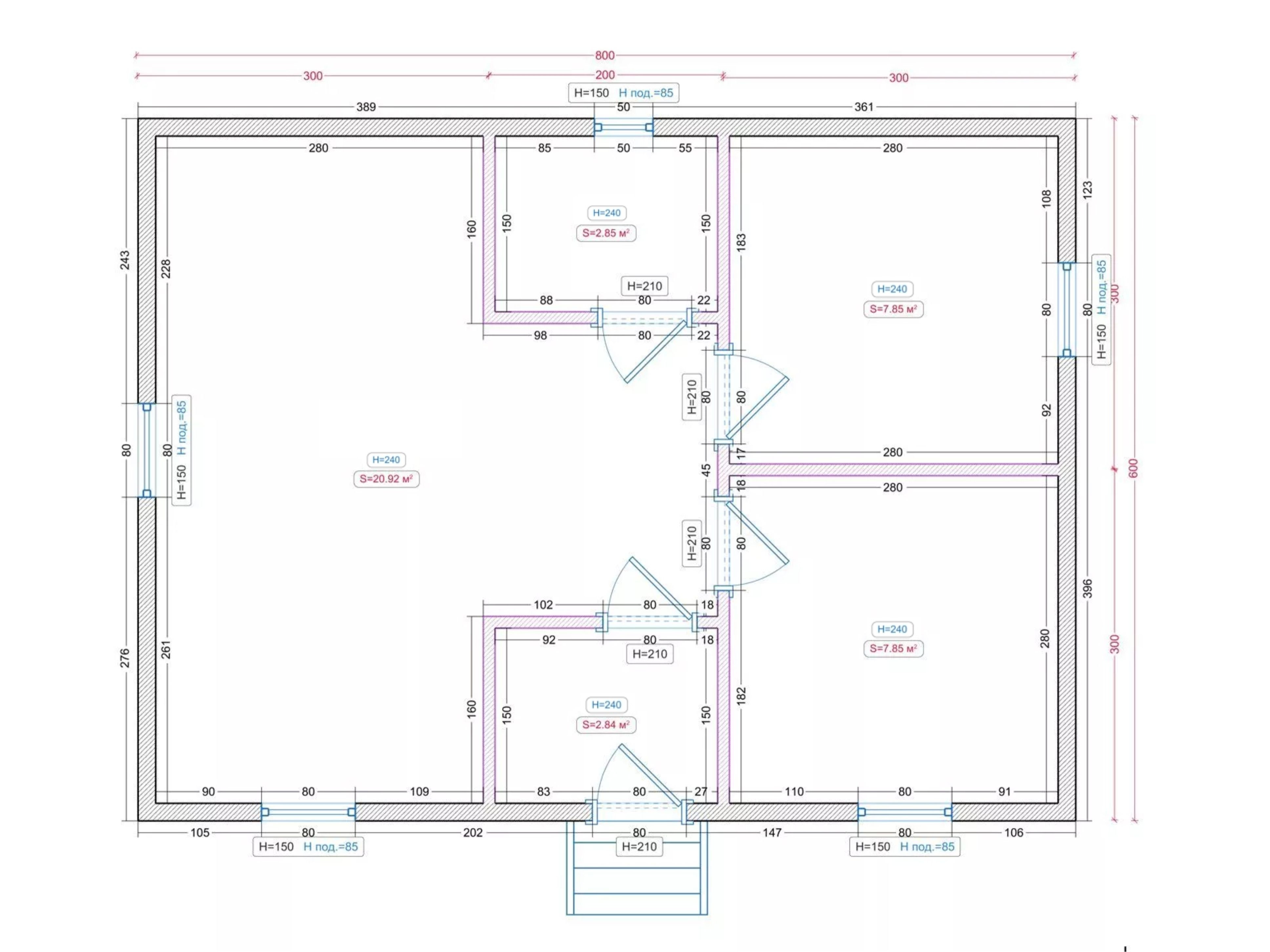 | Дверь входная | Филенчатая 800*2000 |